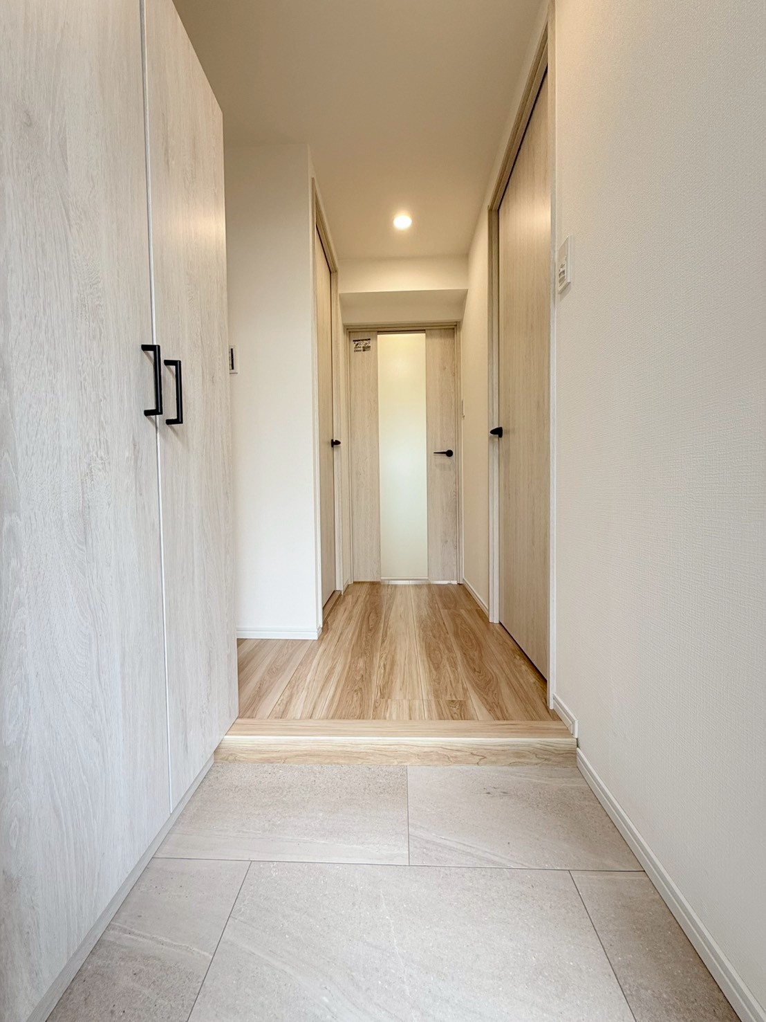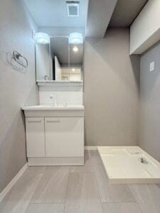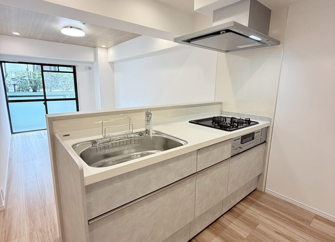 リノベーション内容キッチン新規交換、洗面台新規交換、クロス全室張替、建具全室交換、配管更新工事(切り回し)、巾木交換、ダウンライト増設、浴室新規交換、トイレ新規交換、フローリング張替、給湯器交換、下足収納交換、分電盤交換、照明器具新規取付、網戸張替、和室→洋室変更、防水パン交換、クリーニング 等