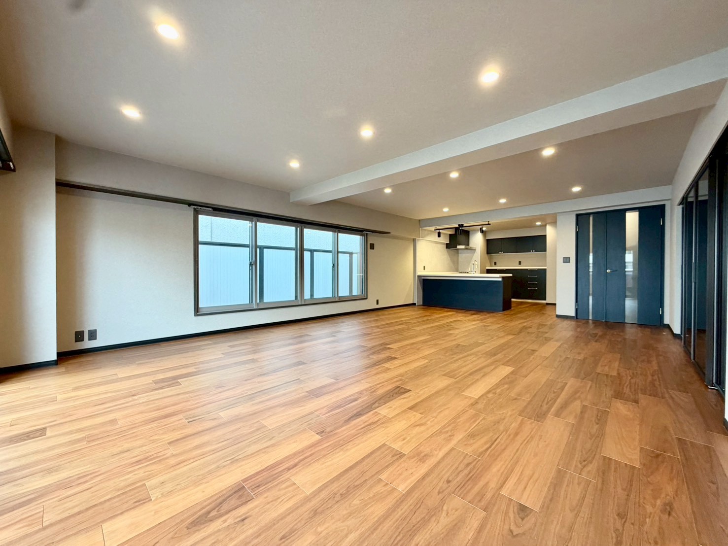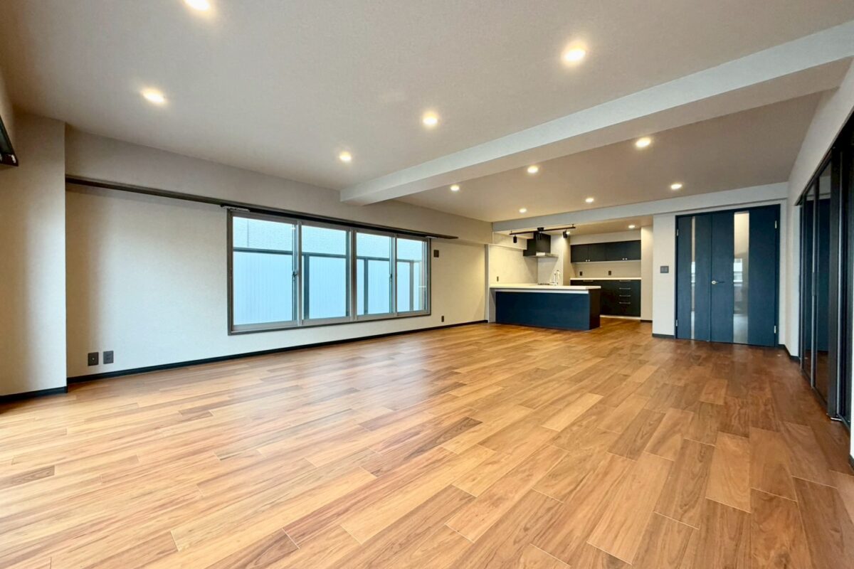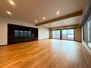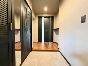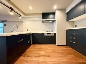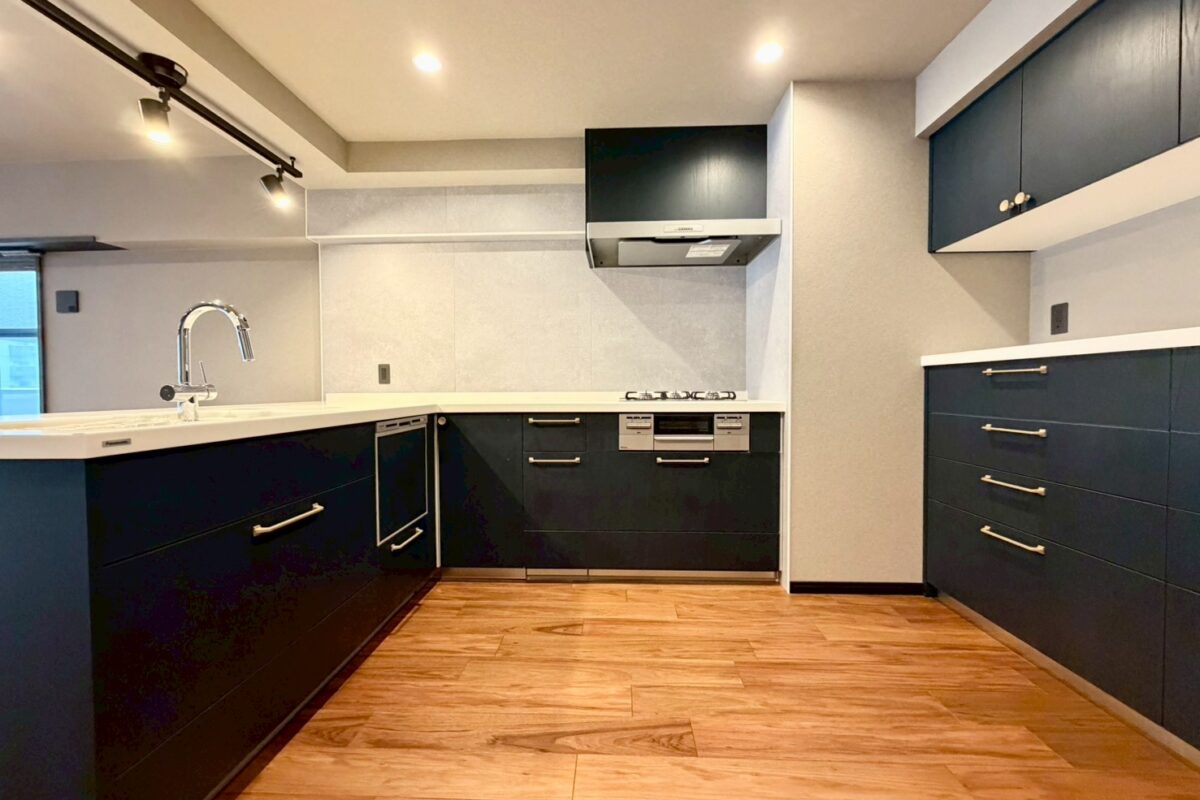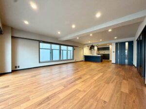| リノベーション内容 | キッチン新規交換、洗面台新規交換、クロス全室張替、建具全室交換、配管更新工事(切り回し)、巾木交換、ダウンライト増設、浴室新規交換、 トイレ新規交換、フロアタイル上張替、給湯器交換、下足収納交換、分電盤交換、照明器具新規 |