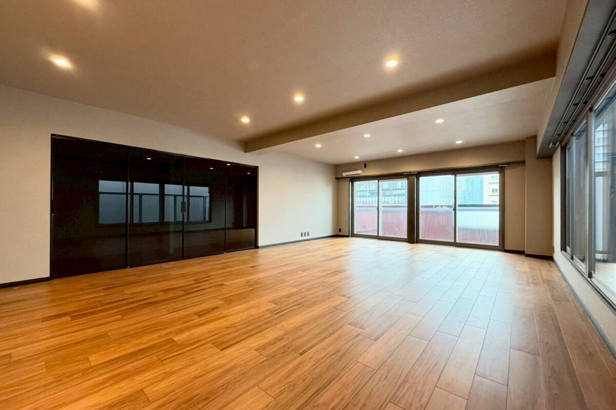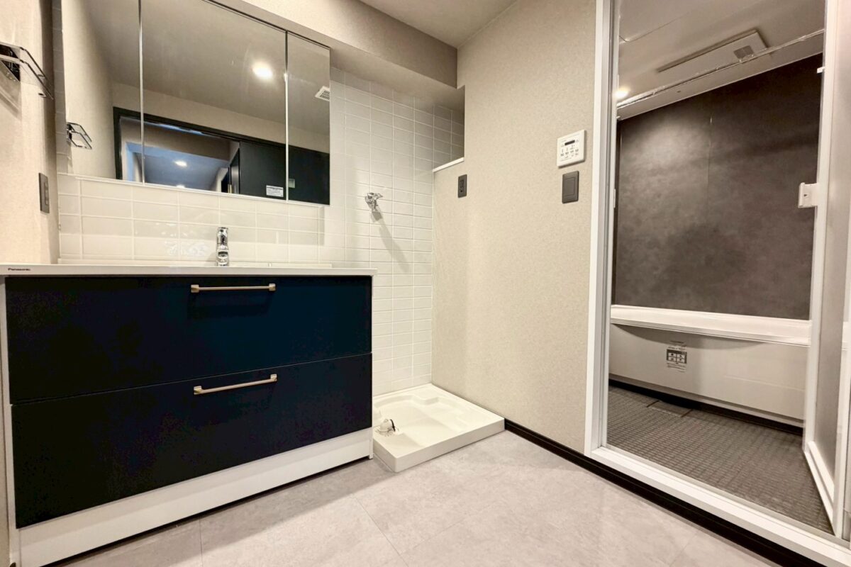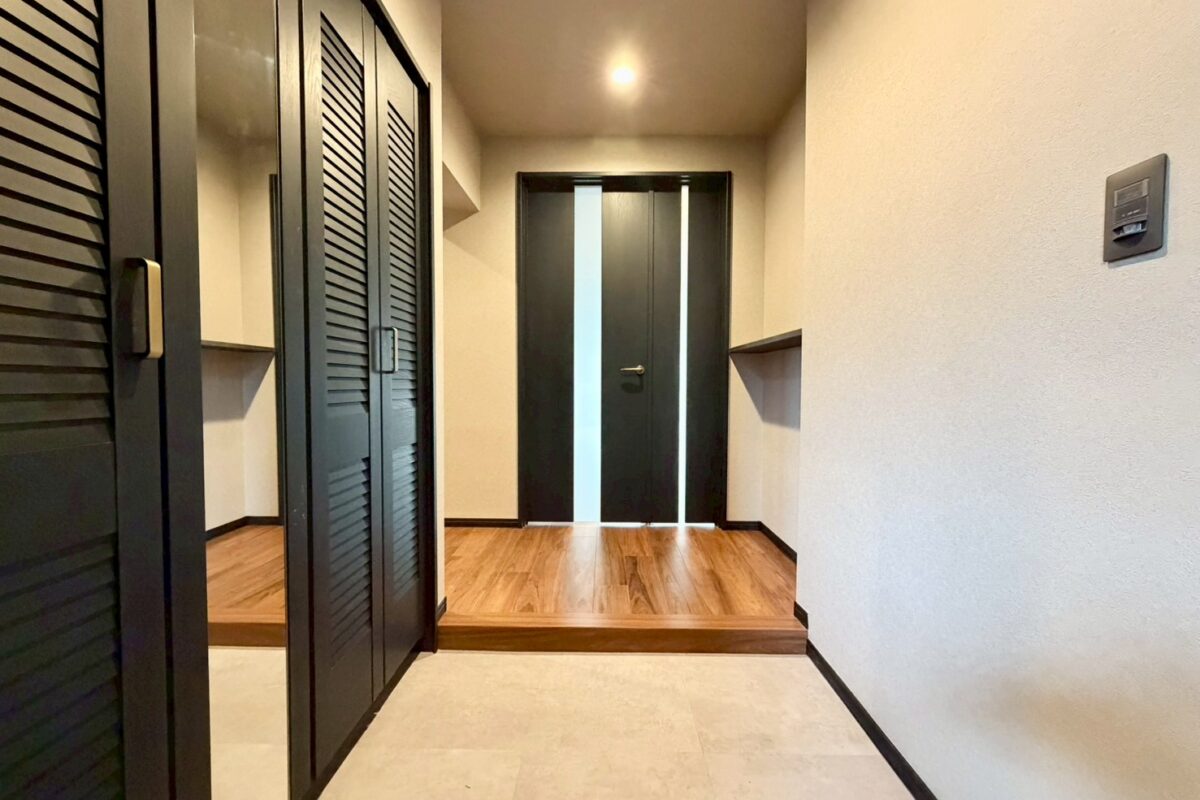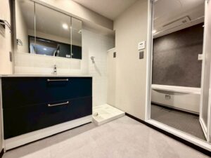 | リノベーション内容 | キッチン新規交換、洗面台新規交換、クロス全室張替、建具全室交換、配管更新工事(切り回し)、巾木交換、ダウンライト増設、浴室新規交換、 トイレ新規交換、フロアタイル上張替、給湯器交換、下足収納交換、分電盤交換、照明器具新規 |