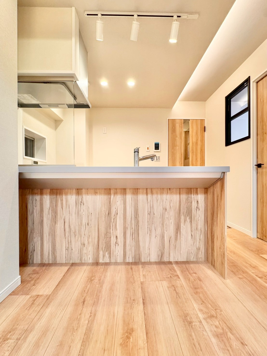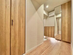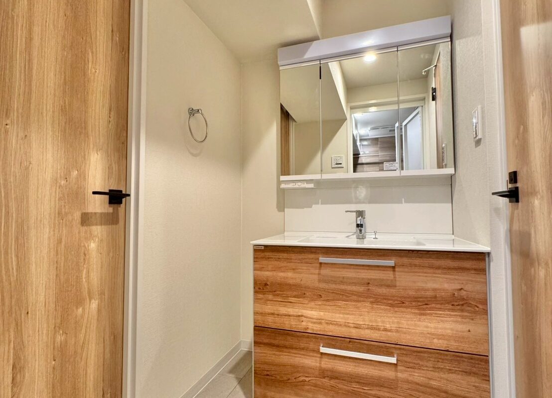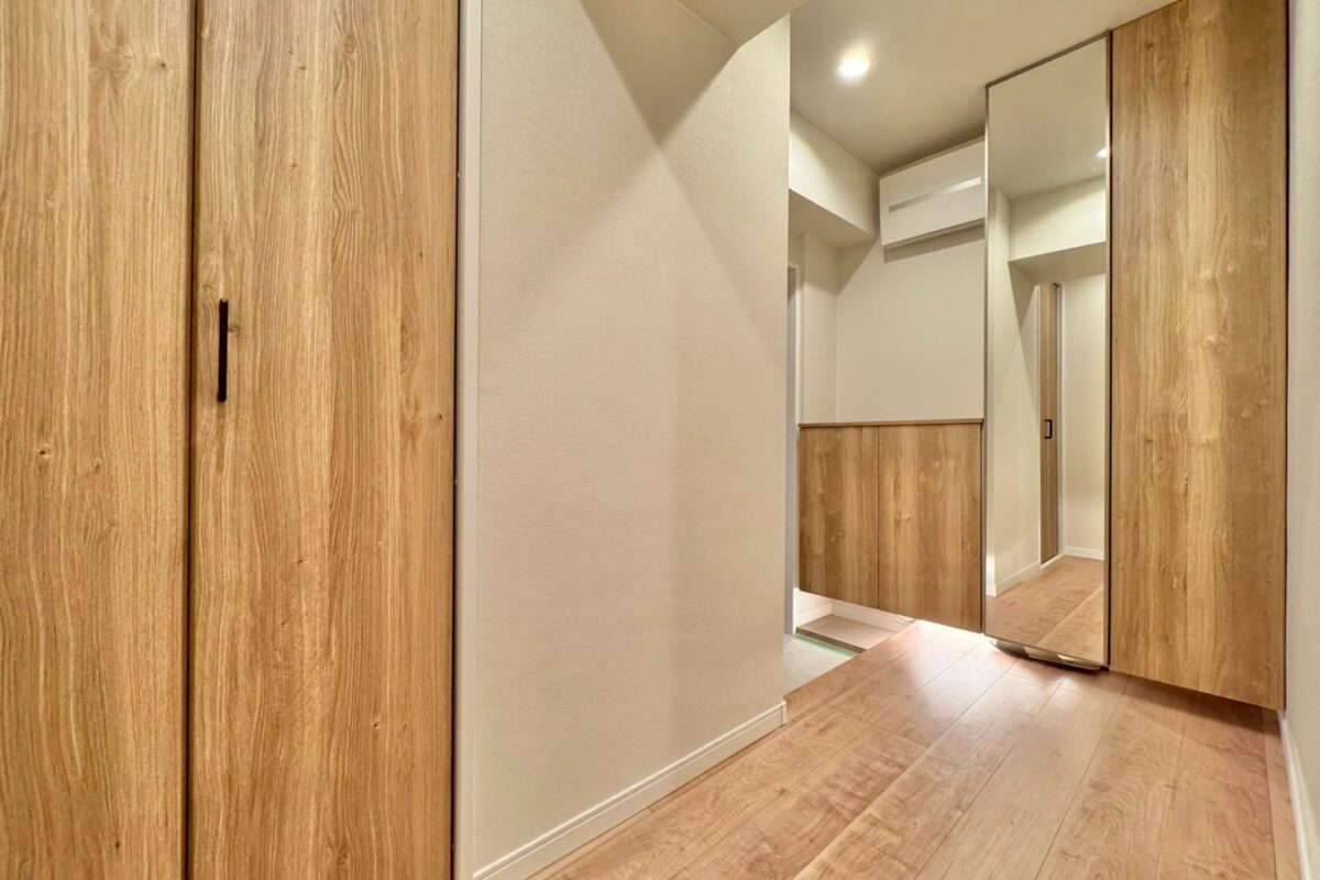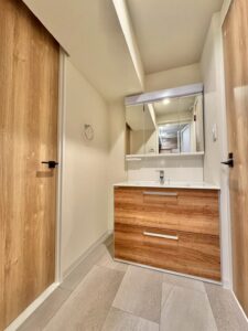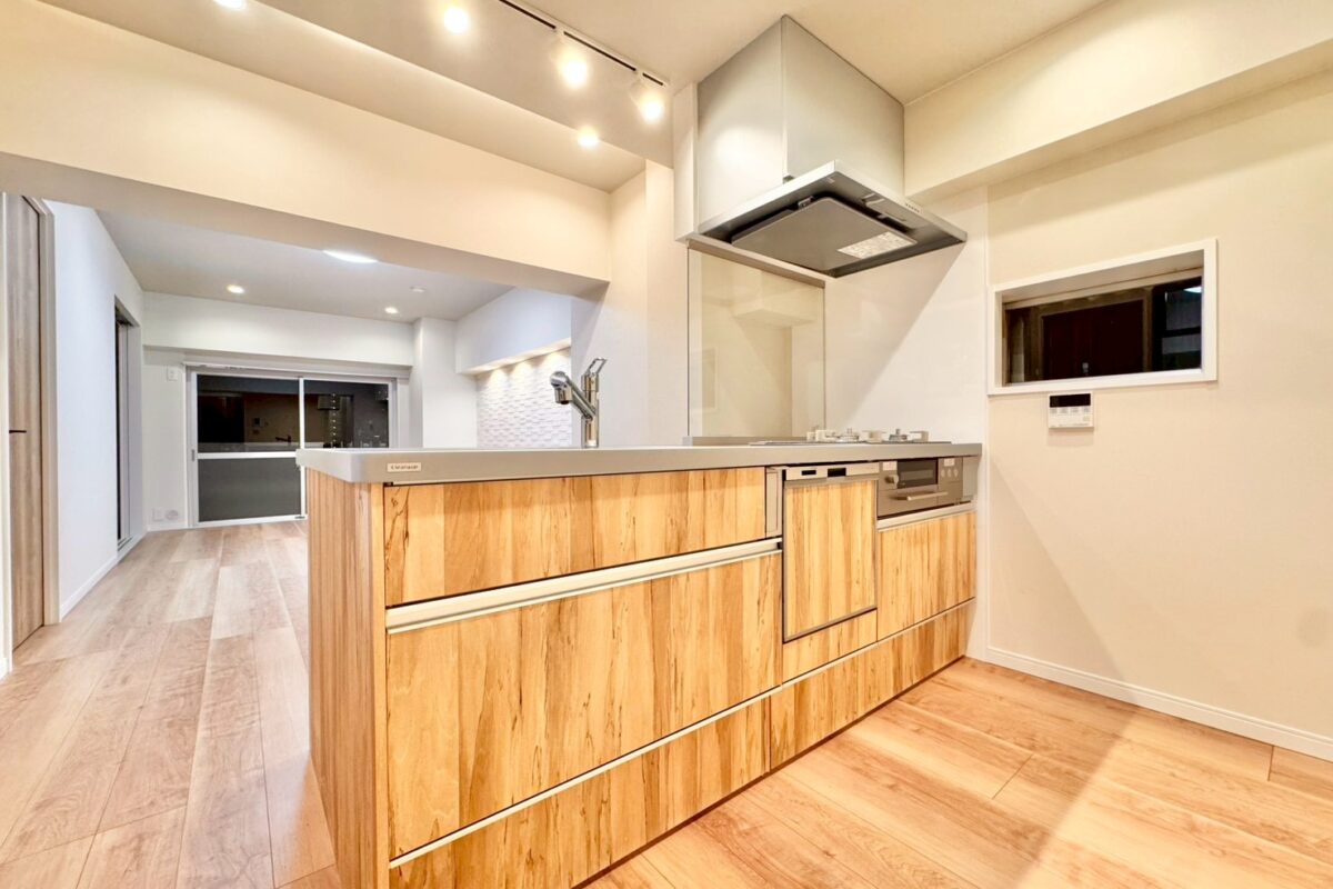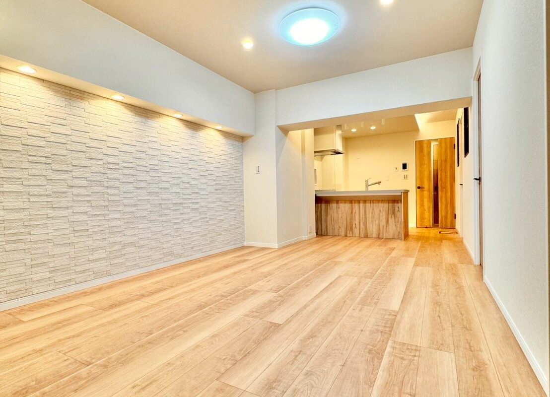 リノベーション内容キッチン新規交換、洗面台新規交換、クロス全室張替、建具全室交換、配管更新工事(切り回し)、巾木交換、ダウンライト増設、浴室新規交換、トイレ新規交換、フローリング張替、給湯器交換、下足収納交換、分電盤交換、照明器具新規取付、網戸張替、和室→洋室変更、防水パン交換、クリーニング 等
